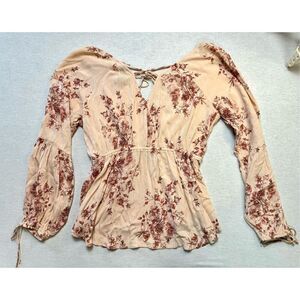 American Rag Cie Dusty Pink Floral Boho Elastic Waist Peasant Blouse
