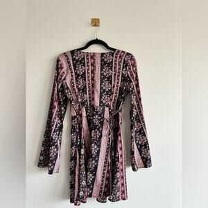Cute Bohemian boho button up dress with bell sleeved and tie in back. V neck cut.