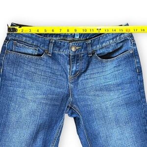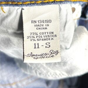 These juniors American Rag bootcut jeans are sturdy and stylish. The denim is solid and well constructed but also soft. Just what you need in a jean. They are in excellent preowned condition and ready to wear.