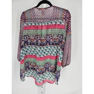 American Rag Cie Keyhole-Neck Long Sleeve Floral Boho Tunic Top Size M