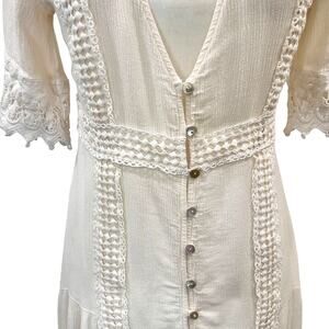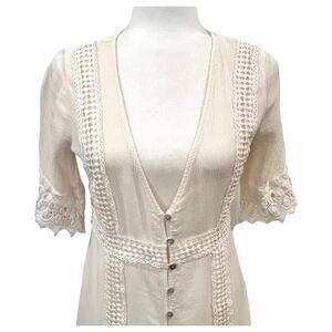 American Rag Cie Off White Rayon Lace Hi-Lo Button Front VNeck Dress Medium