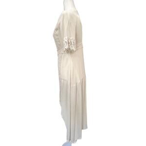 American Rag Cie Off White Rayon Lace Hi-Lo Button Front V-Neck Cottagecore Fairycore Dress. Mother of pearl buttons. Size Medium. Excellent condition. Measurements taken flat: