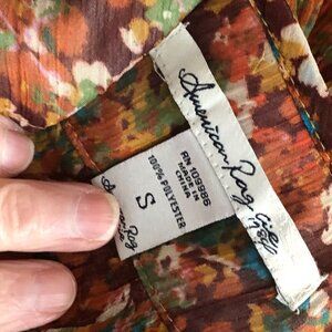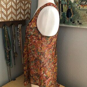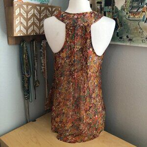 American Rag Cie Orange Red Floral Pleated Cami Tank Top