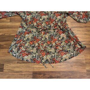 This stylish American Rag Cie blouse features a floral boho design with a sheer lace yoke and button front. Perfect for casual or dressy occasions, it offers a comfortable and flattering fit.
