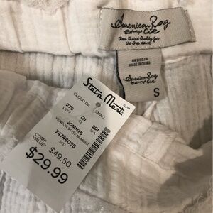 American Rag Cie Small White Gauze Wide-Leg Cropped Capri Pants Slit Leg NWT