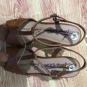 American Rag Cie Women Brown Open Toe Platform Faux Wooden Heels 9.5~