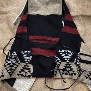 American Rag Cie Womens Bohemian Vest Black Red Cream Tie Waist Size M