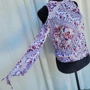 American Rag Cie Women's S Purple Floral Cold Shoulder Blouse Top Long Sleeve