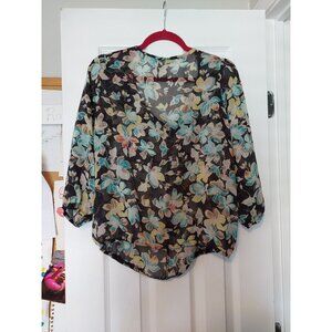 American Rag Cie Womens Sheer Floral Blouse With 3/4 Sleeves Size M