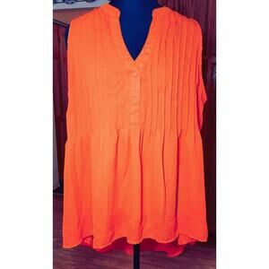 American Rag Cie Womens Sleeveless Top Plus 0X XL V Neck Y2K Tomato Girl Boho