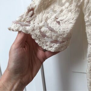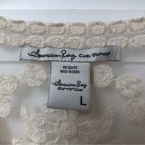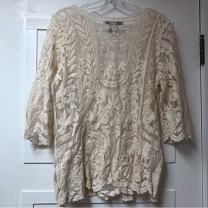 American Rag Cie cream lace embroidered tunic length top 3/4 sleeve L