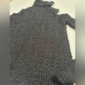 Soft knit sweater with a relaxed cowl turtleneck. Cold-shoulder cutouts add a modern touch. Comfortable and easy to style. From a pet and smoke free home. Bundle with additional items for a discount.