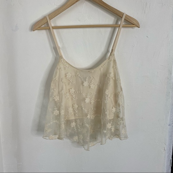 Cream American Rag crop top with Lacey overlay, worn once or twice in size S, adjustable straps