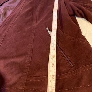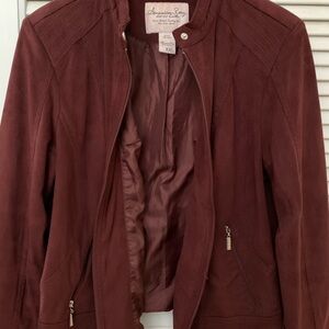 Elegant deep red jacket with smooth texture. Ideal for a sophisticated style.