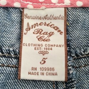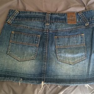 Like New! Adorable american rag medium denim skirt with faded look and distressed bottom! 12" long