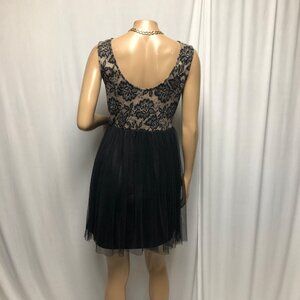 American Rag Dress Womens Sz Small Black Tan Lace Short Stretch Party Whimsigoth