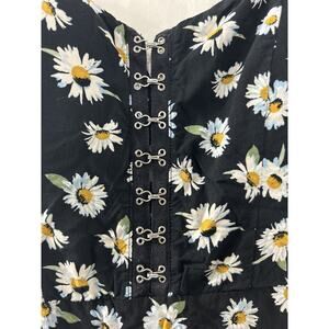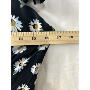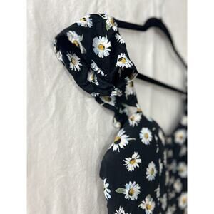 Elevate your summer fashion with this American Rag bustier romper in a stunning black floral pattern. The sweetheart neckline and flutter sleeves add a flirty touch, while the hook and eye closure ensures a secure fit. Perfect for any occasion, whether it's a festival, wedding, or casual outing, this one-piece is versatile and stylish. The size small romper has a 3-inch inseam and is ideal for those who love nature, bohemian, or classic styles. Don't miss out on this must-have addition to your wardrobe.