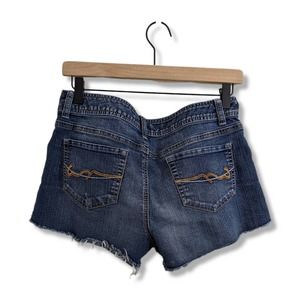 American Rag Frayed Cuttoff Demin Shorts with Buttons, Blue (Size 9)
