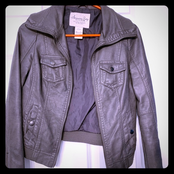 Beautiful grey leather American Rag jacket. Zippers by hands, large collar
