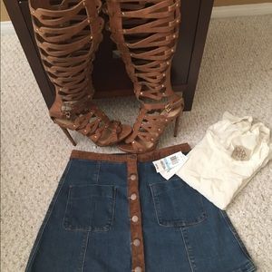 American Rag Jean Skirt w/Faux Fur Trim/2 Pockets