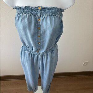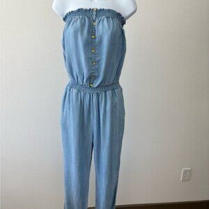 American Rag Jumpsuit Large Strapless Chambray Pocket Festival Boho-Chic Coastal