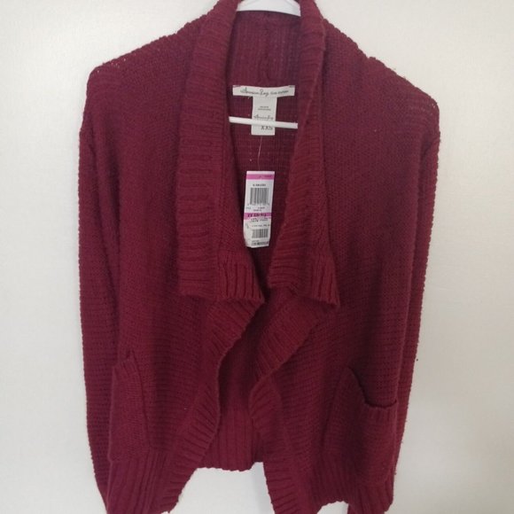 American Rag Knit Sweater XXS Open Front Draped Collared Zinfandel New With Tags
