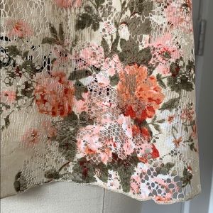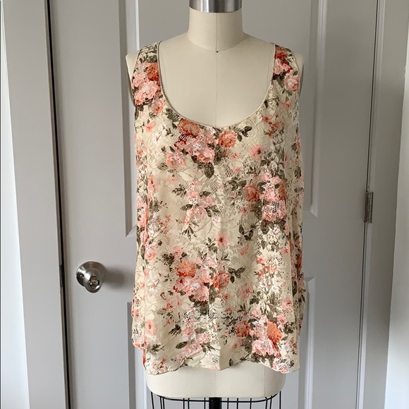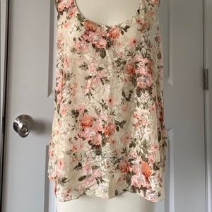American Rag Lace tank with floral pattern. Swingy fit. Lightweight and feminine! Racer back style and flowier body. 100% nylon. Never worn and in perfect condition!
