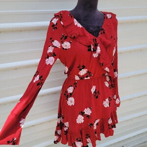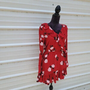 American Rag Long Sleeve Floral V Neck Ruffle Lined Dress Rayon Stretch Sz S