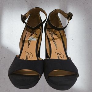 Go retro on your night out in America Rag's Reeta sandals featuring an ankle strap and sky-high platform block heel for amazing height. Worn once!