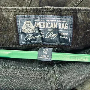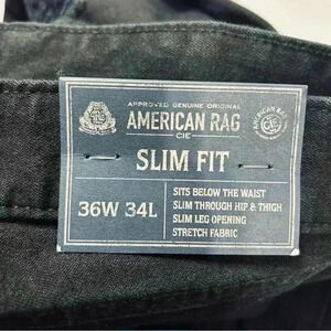 New with tags American Rag Men Jeans Shadow Dark Black 36Wx34L Slim Fit Distressed Stretch.