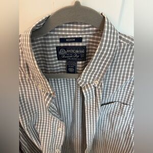 American Rag Men’s Button Down Medium Gray White Checkered Shirt