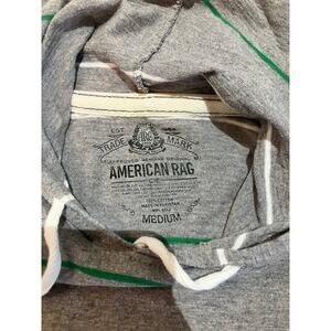 American Rag Men’s Long Sleeve Gray & White Stripe T-Shirt with Hood. Sz M.