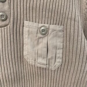 American Rag Men’s Ribbed Henley Sweater Beige Taupe 100% Cotton Size Large Pock