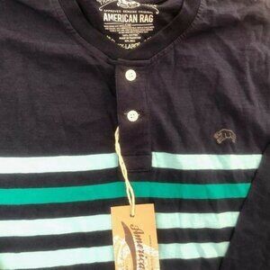 American Rag Men's Sweater XX-Large 100% Cotton Navy/Blue striped Shirt