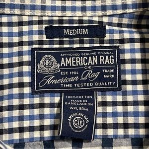 American Rag Mens blue checked long sleeve Button up shirt Medium | EUC | measurements in pictures