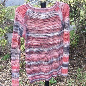 Crew Neck , Raglan Sleeve, with Multi-Red, White and Gray Color threads crossing woven with very pretty parttern design.
