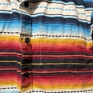 Stylish shirt with a mix of vibrant colors. Features a classic collar and button-up design.