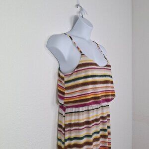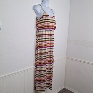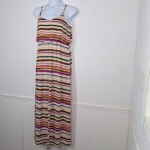 American Rag Multicolor Striped Maxi Dress Sz XL Adjustable Straps Boho 70s Art