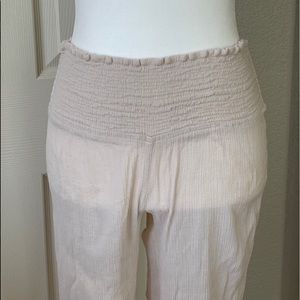 Cute lightweight pants for the summer. It measures 13 1/2” from side to side (unstretched). Front rise measures 9”