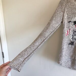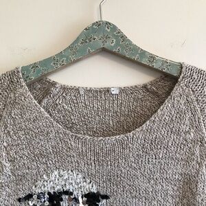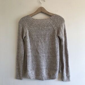 Features: Tan long sleeve sweater, knit, high-low front, scoop neck