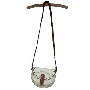 American Rag Pink Rose Vine Cream Boho Cottage Crossbody Bag Brown Braided Strap
