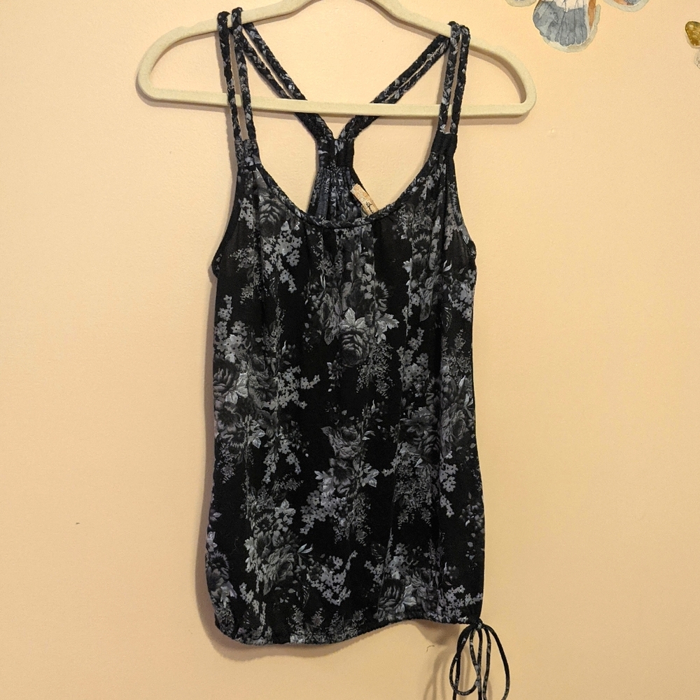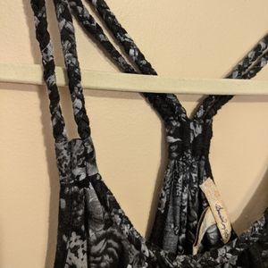 Black and gray floral print with braided straps