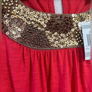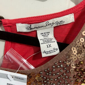 American Rag Red Sleeveless Lightweight Top with Beaded/Sequin Collar Size 1X. NWT. New Excellent condition