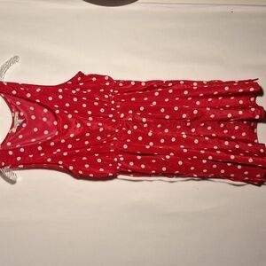 Stylish red top with playful white polka dots. Ideal for casual wear.