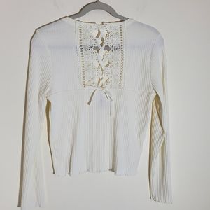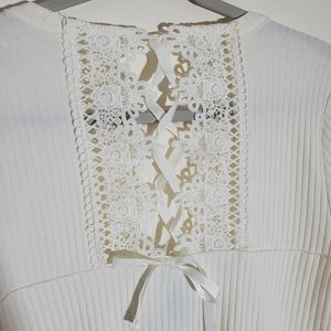 Shoelace ribbon-tie back with lace makes this top super feminine