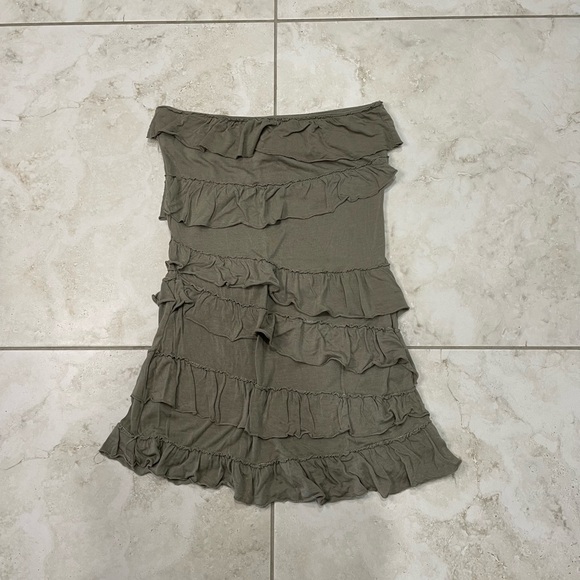 American Rag ruffle strapless top size small in military green.
