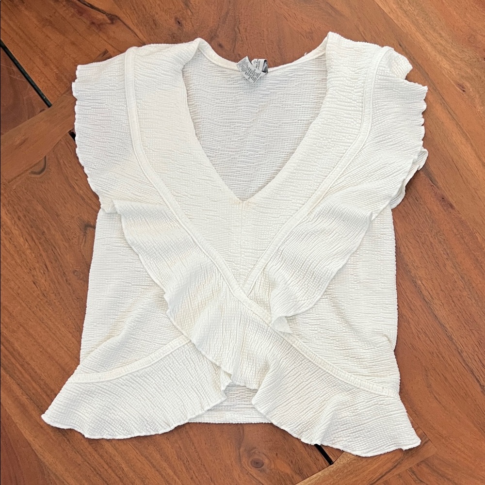 Elegant ruffle details. cut gives amazing cleavage detail Soft fabric. Perfect for any occasion.
