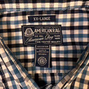 American Rag Shirt Men's Long Sleeve Button Up Oxford Plaid Blue Black White 2XL