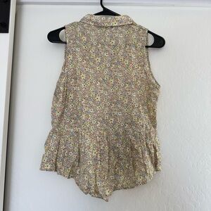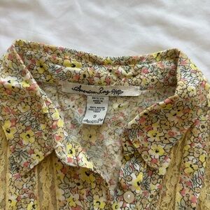 American Rag women’s collared tank top size small. Creamy yellow floral print with sheer lace details. Great condition- no flaws! (118)