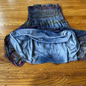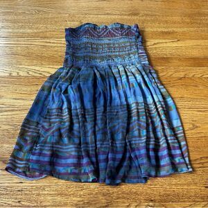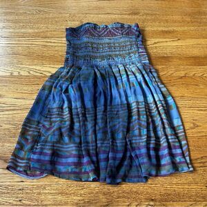 Blue strapless dress with tribal/ Aztec print. There is lining underneath.